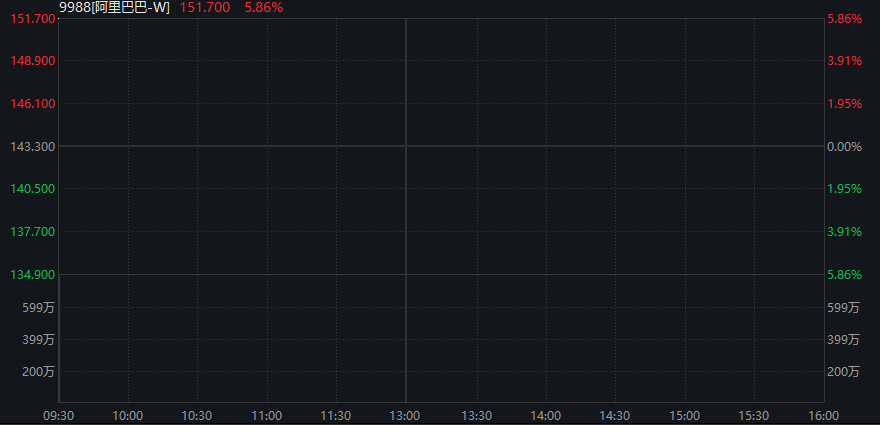 大型科网股全线上涨,阿里巴巴一度涨超6%,续创近四年新高。百度集团涨超5%。京东、腾讯控股、网易等涨幅居前。